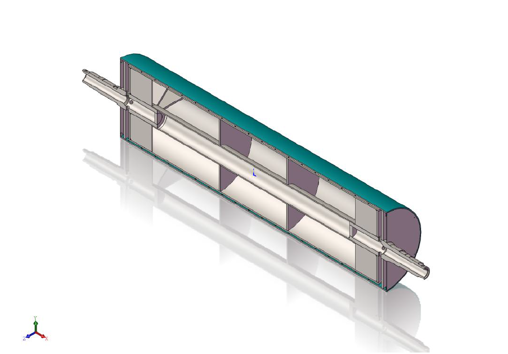 雙流道大直徑流延主冷輥,包括輥筒、進水導(dǎo)流器、出水導(dǎo)流器,進水軸頭管和出水軸頭管,輥筒包括外筒、與外筒同軸設(shè)置的內(nèi)筒和在外筒、內(nèi)筒之間設(shè)置的多個螺旋導(dǎo)流片,相鄰兩個螺旋導(dǎo)流片構(gòu)成一個螺旋導(dǎo)流槽,進水導(dǎo)流器、出水導(dǎo)流器分別固定連接在輥筒的兩端,進水軸頭管和出水軸頭管分別安裝在進水導(dǎo)流器、出水導(dǎo)流器上。大直徑流延主冷輥,結(jié)構(gòu)簡單,由于設(shè)置了進水導(dǎo)流器和出水導(dǎo)流器,可有效降低主冷輥內(nèi)部的流動阻力,能夠使得流入輥筒內(nèi)的冷卻水量更加均勻,提高主冷輥的送水能力,提高主冷輥冷卻效率,有效提高輥筒表面的溫度均勻性,節(jié)約能耗。